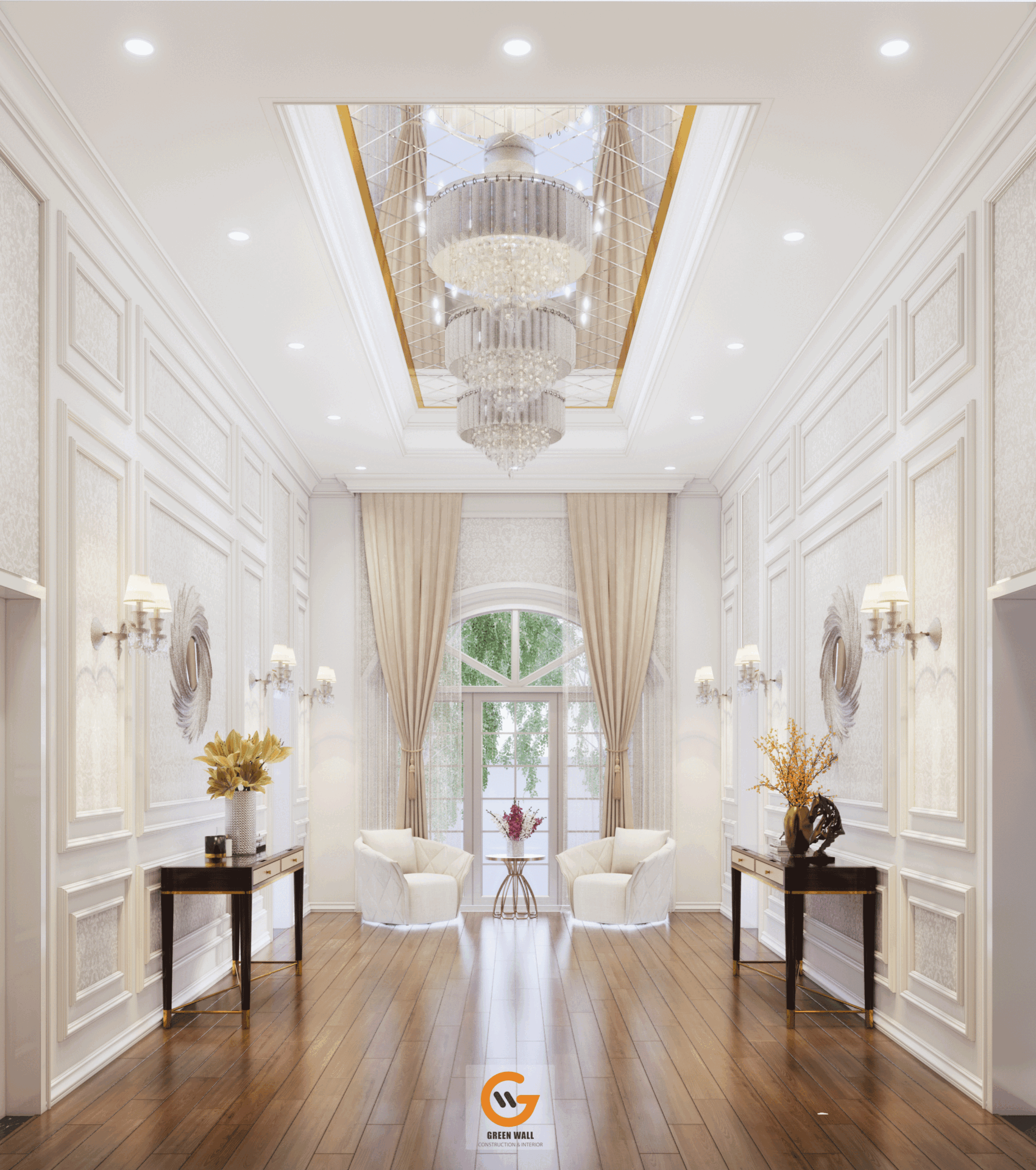 - Sảnh chính cao ráo cùng bậc thang đôi tạo cảm giác trang trọng và sang trọng.