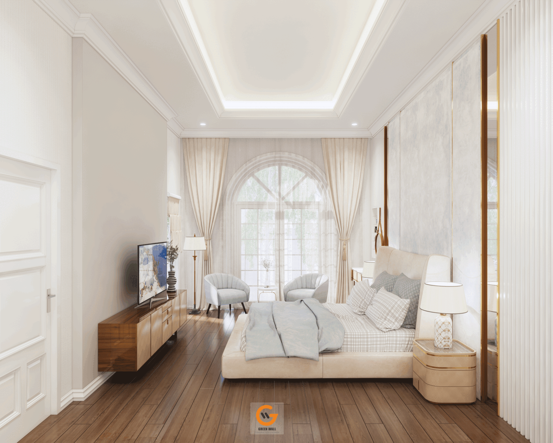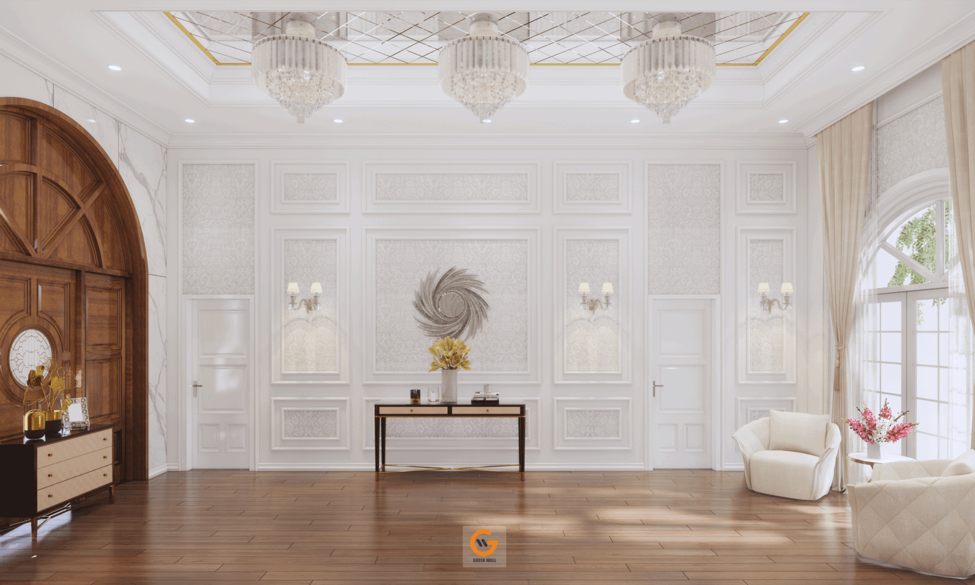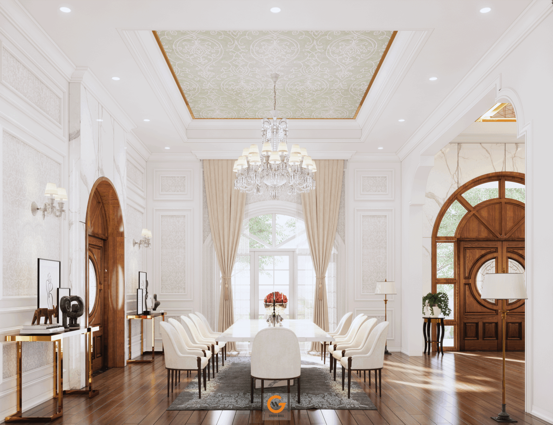 - Ánh sáng tự nhiên tràn ngập, kết hợp cùng hệ cửa vòm kính và cửa gỗ cao cấp, tối ưu công năng và thẩm mỹ.