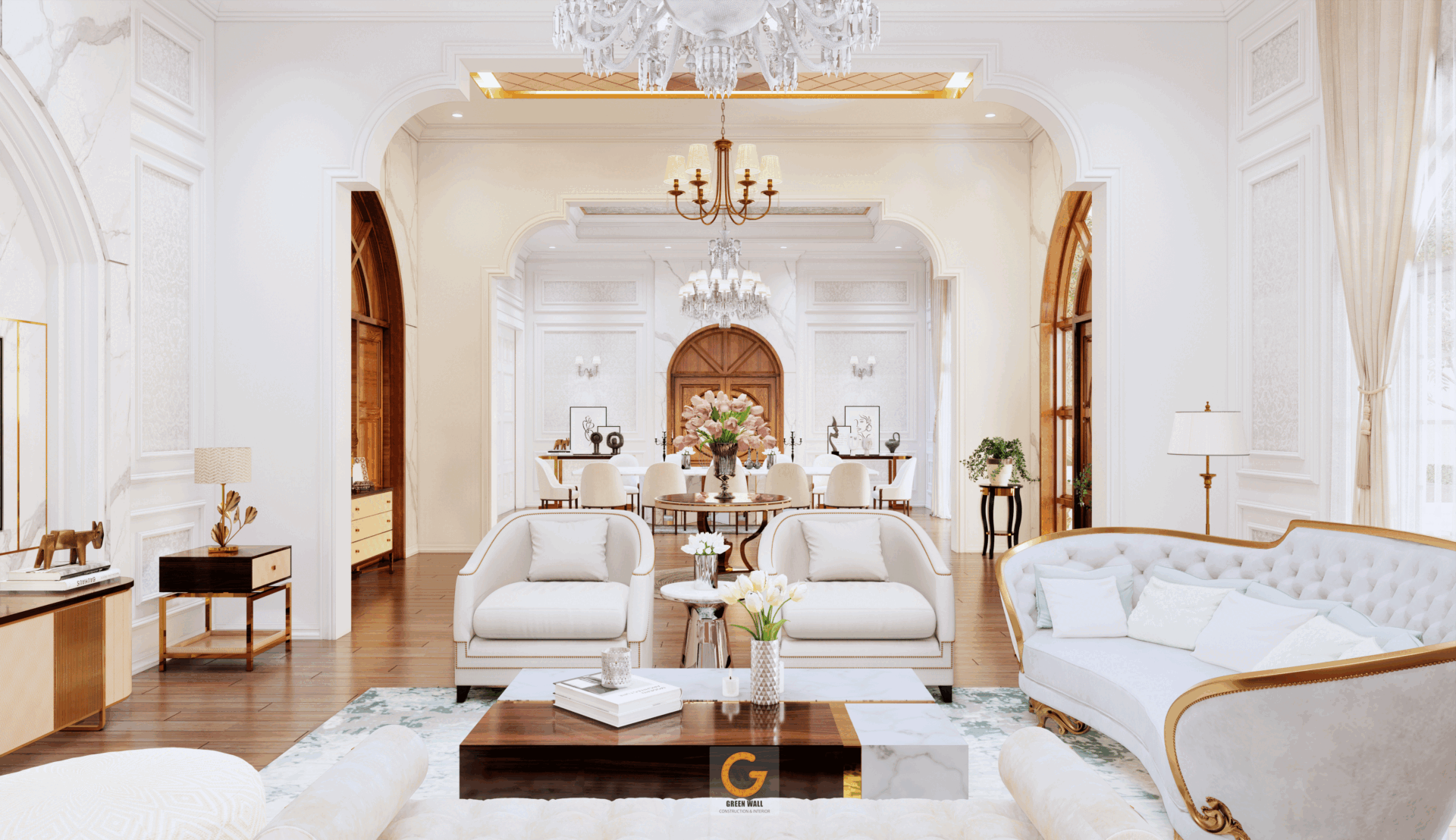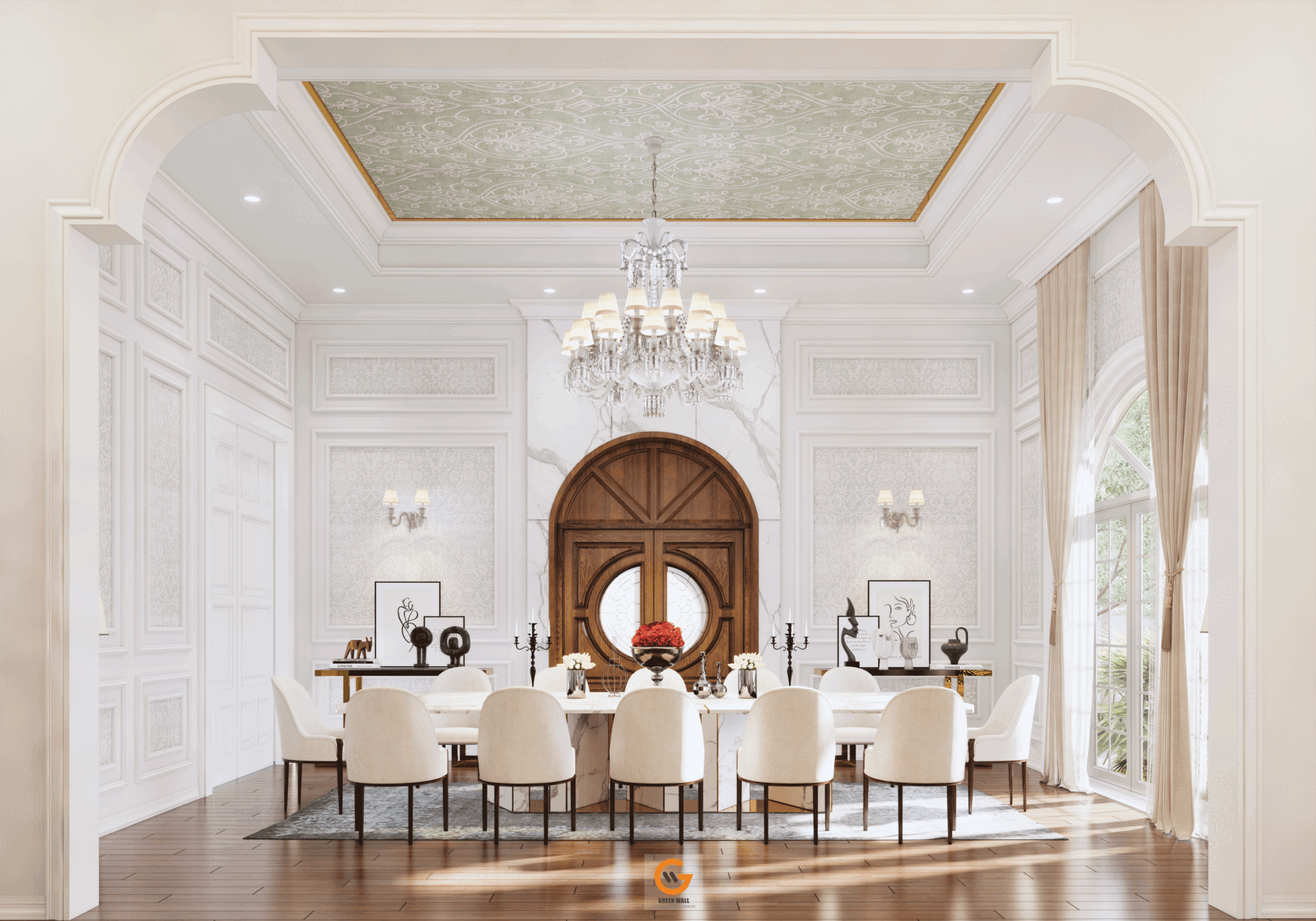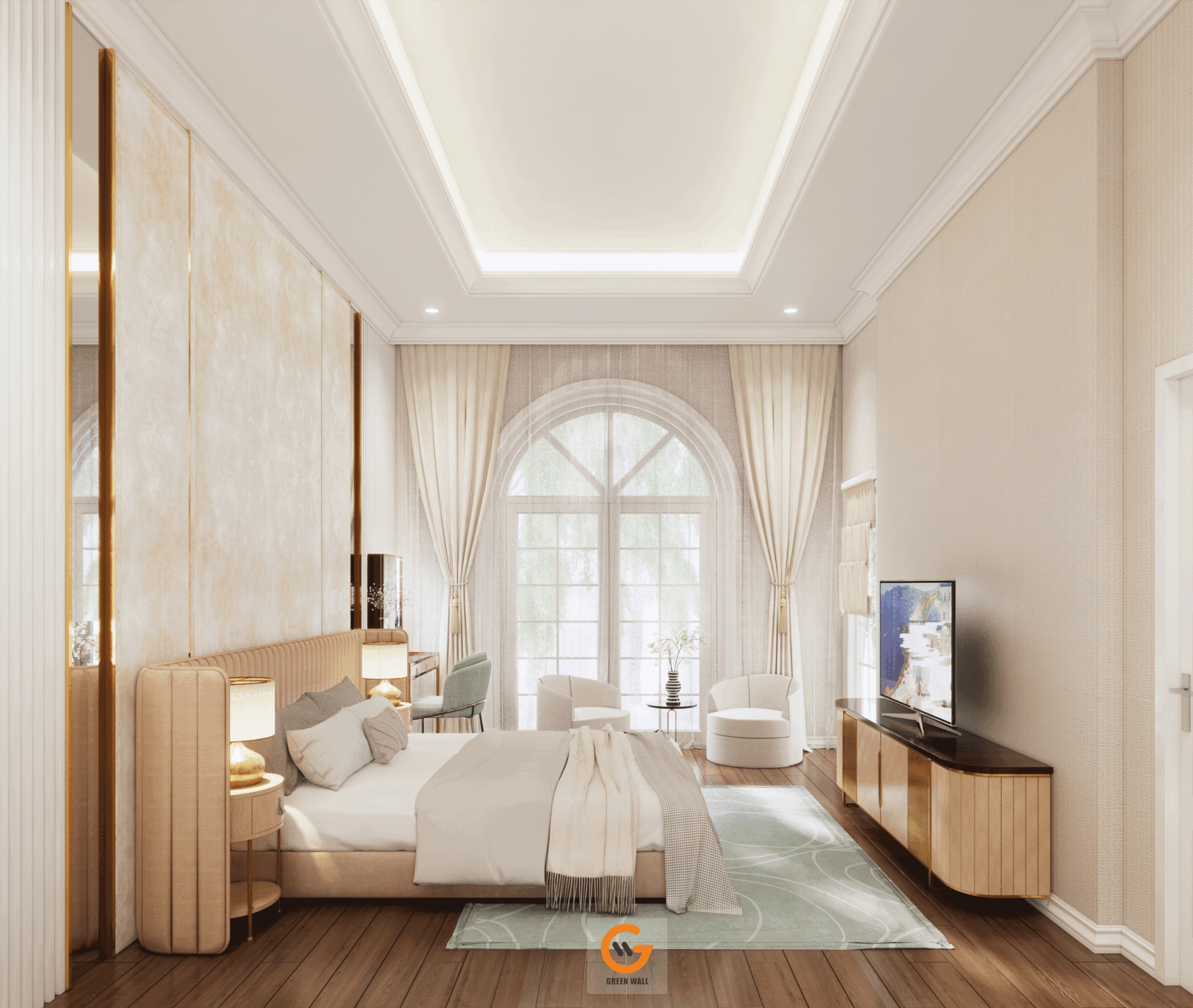 - Ánh sáng tự nhiên tràn ngập, kết hợp cùng hệ cửa vòm kính và cửa gỗ cao cấp, tối ưu công năng và thẩm mỹ.